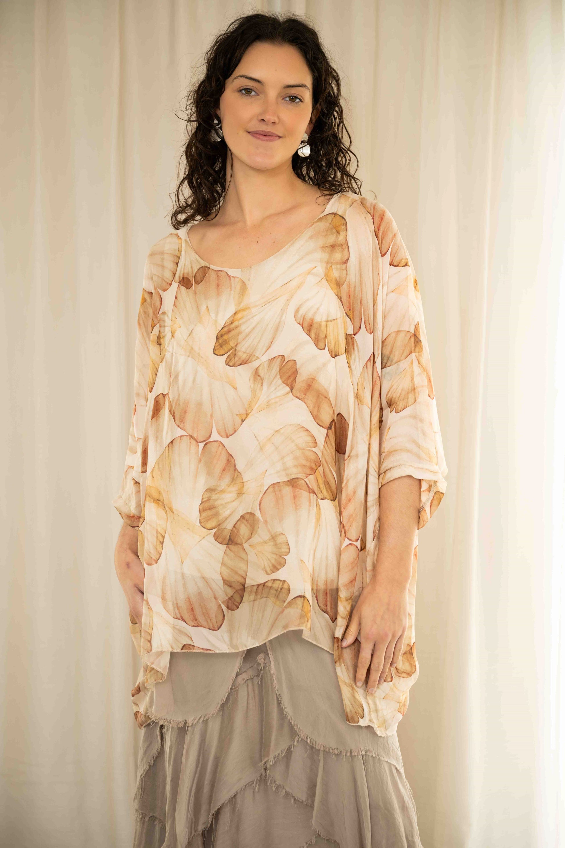 The Everley Silk Top in Beige brings a soft, understated elegance to this effortlessly chic silhouette. Crafted with a lightweight silk outer layer and a stretchy attached lining, it offers both comfort and sophistication in a one-size-fits-most design. The delicate mix of warm neutral tones adds depth to the fabric, making it a versatile piece that complements a wide range of styles and colours.