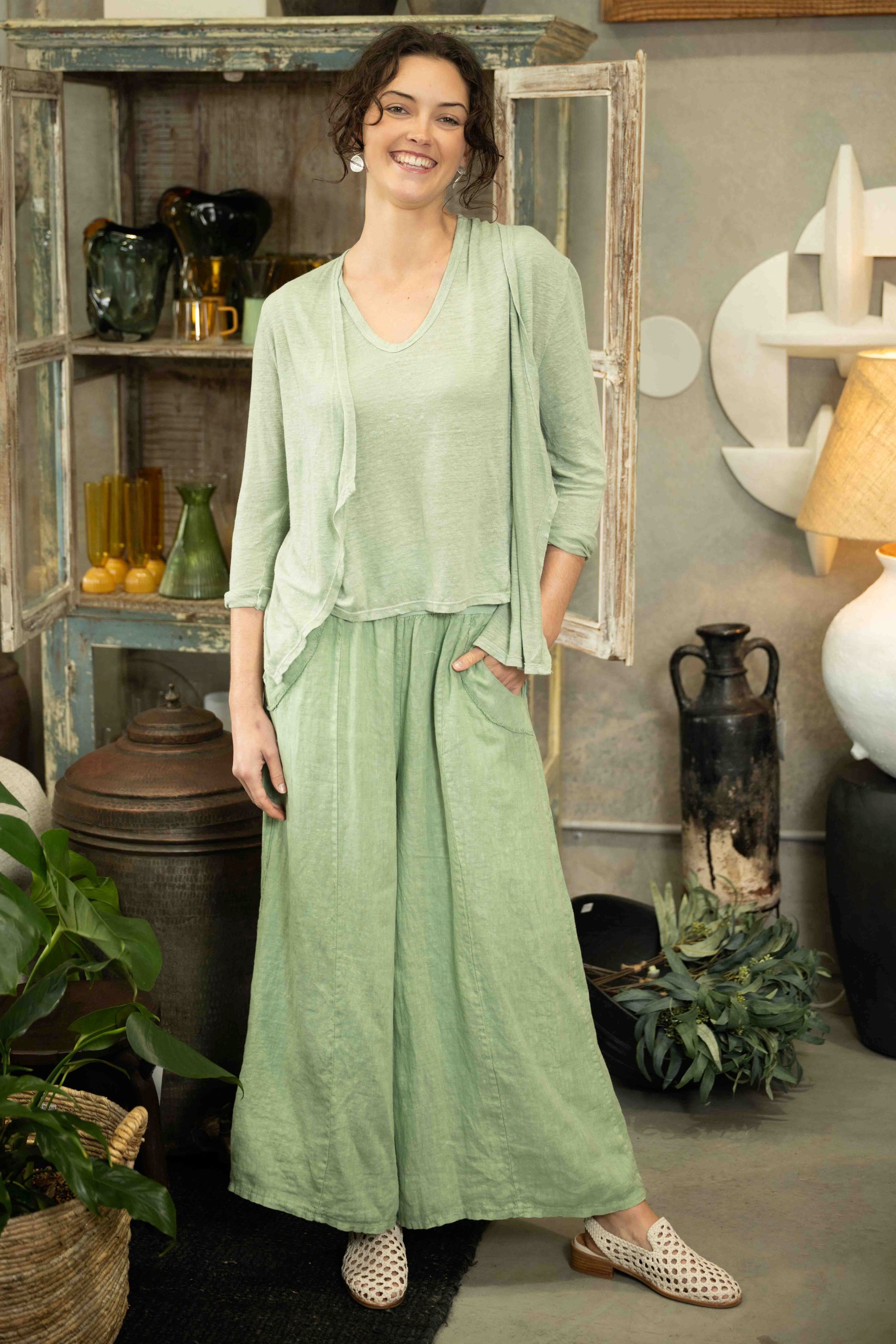 The Luxe Top in Green Bay brings a fresh, grounded tone to this everyday wardrobe essential. Made from a breathable linen jersey blend, it combines the airy feel of linen with just the right amount of stretch for all-day comfort and ease.