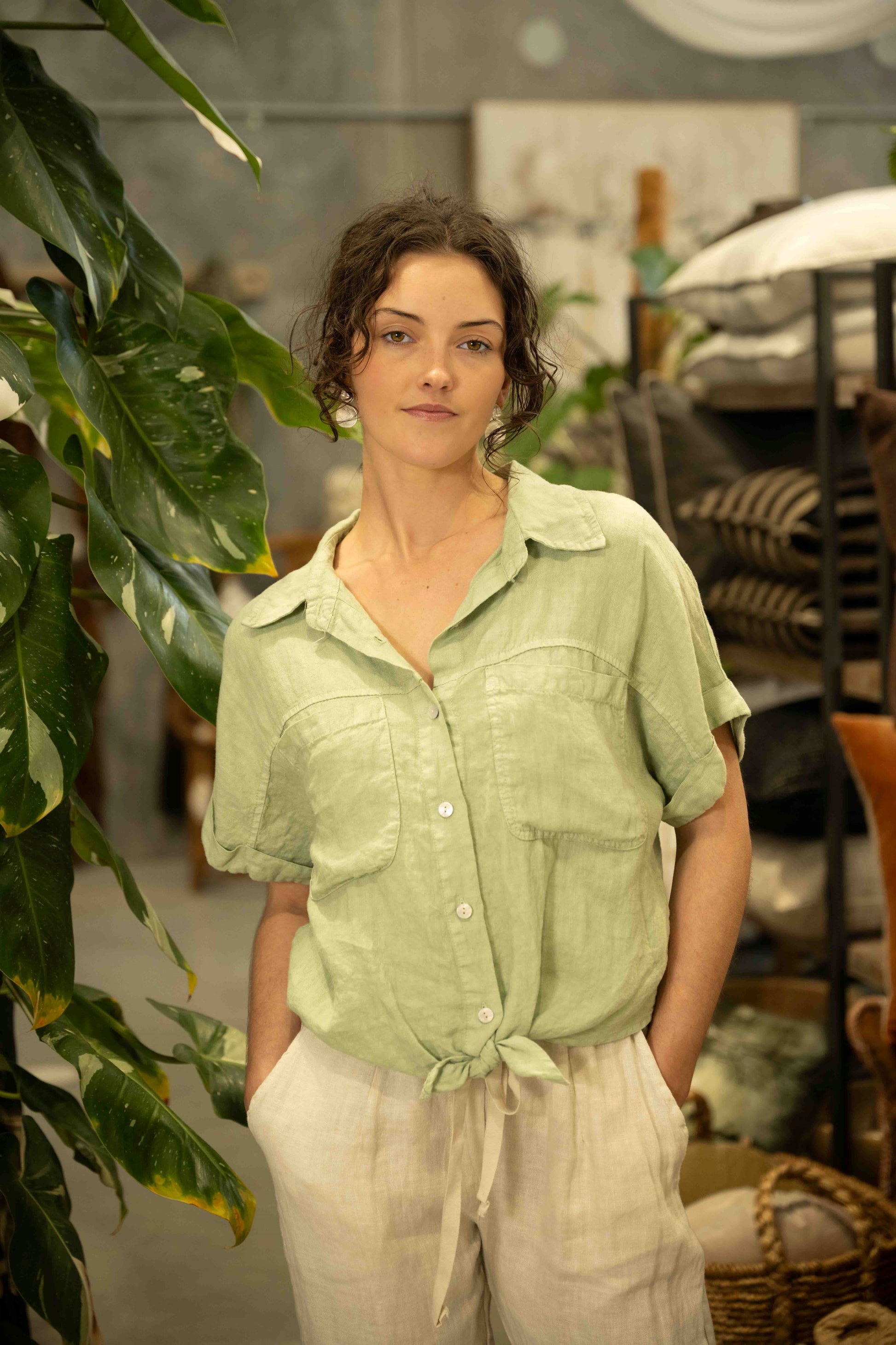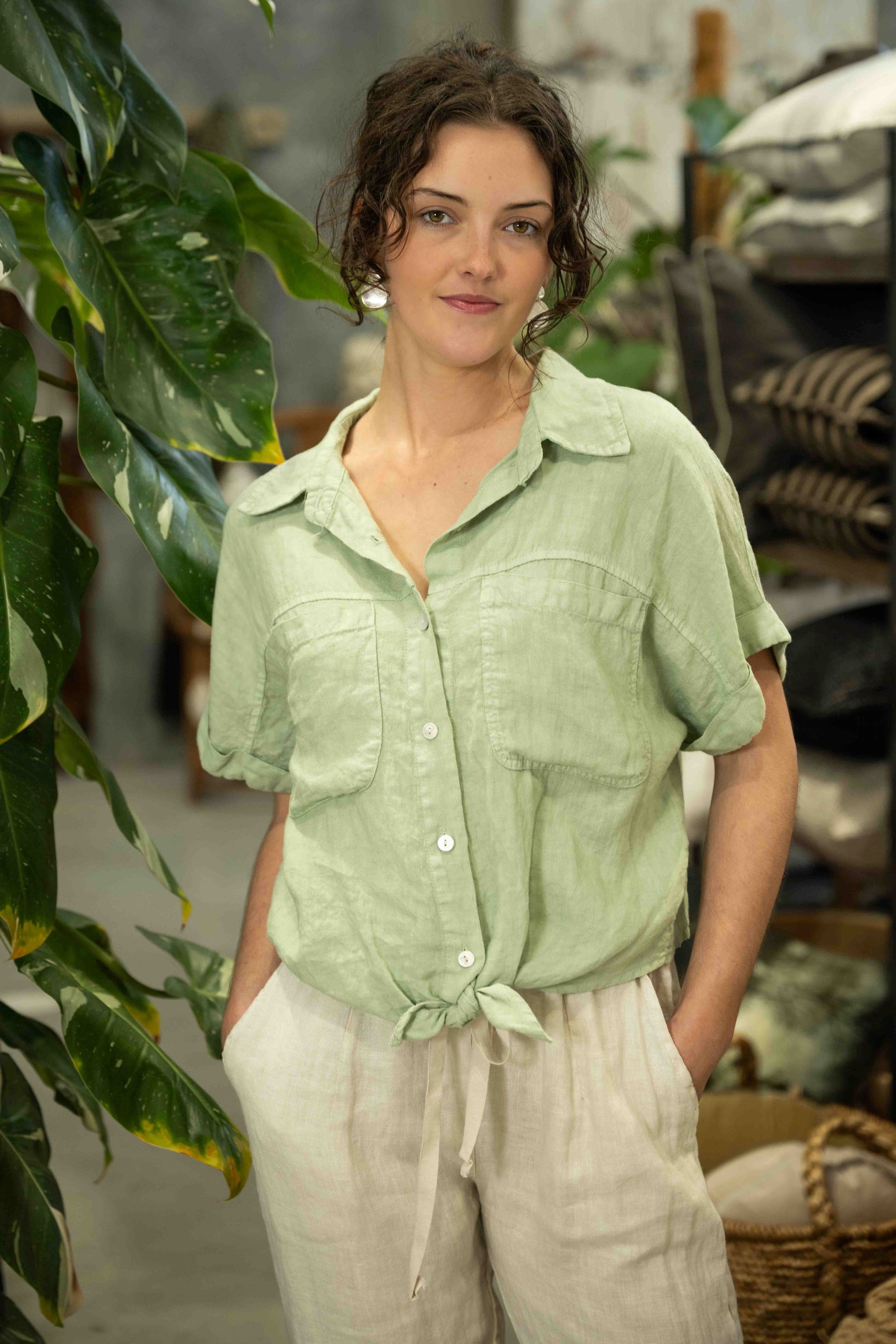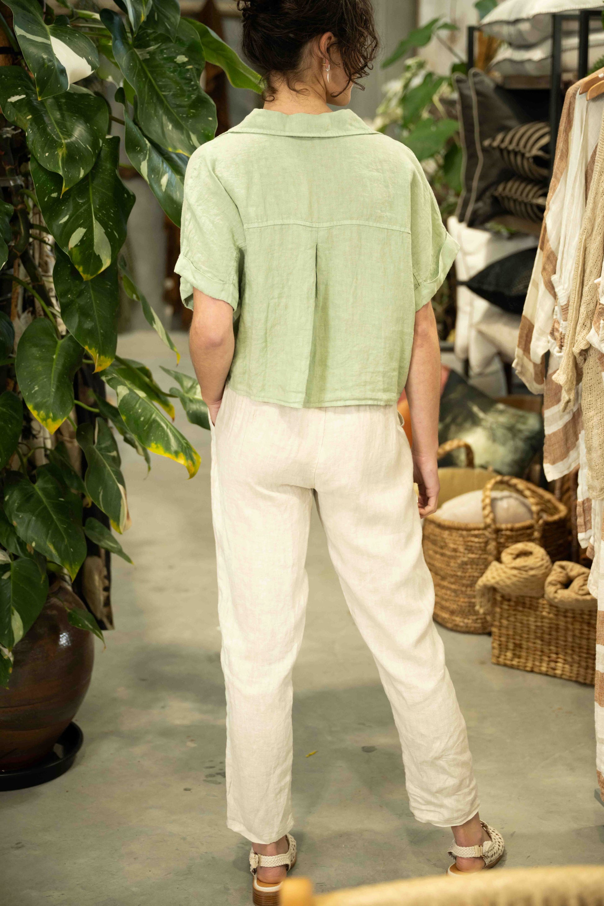 The Zulu Top in Green Bay is a fresh, modern take on the classic linen shirt, designed to bring relaxed sophistication to your wardrobe. Crafted from breathable linen, this cropped style features a soft, earthy Green Bay hue that adds a natural, grounded feel to any outfit.